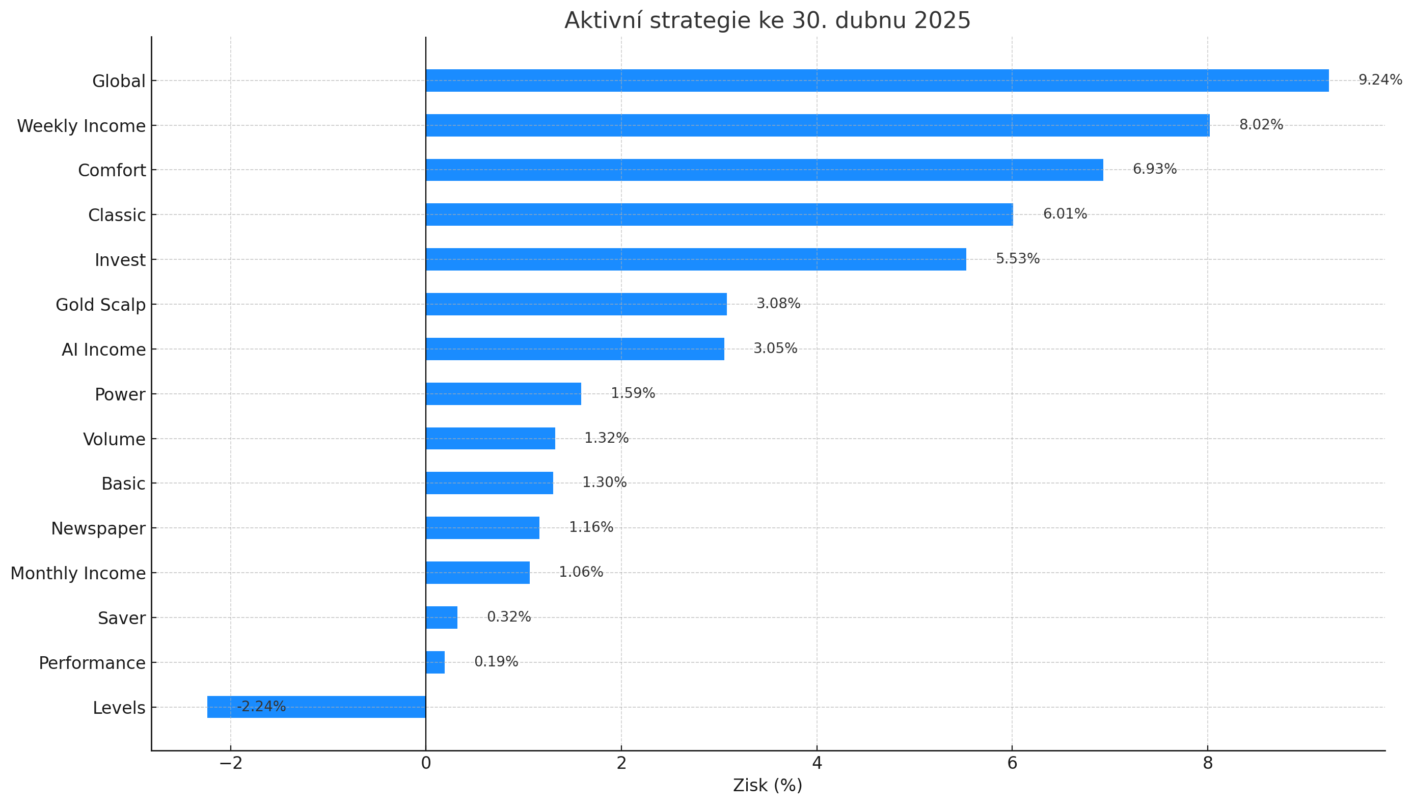 Skvěle si vedly stabilní a samostatné strategie jako Global (+9,24 %) a Comfort (+6,93 %). Výjimečně silný měsíc zažila i kombinovaná strategie Weekly Income (+8,02 %), která právě strategii Global obsahuje a potvrdila tak svoji robustnost i v bouřlivém období.